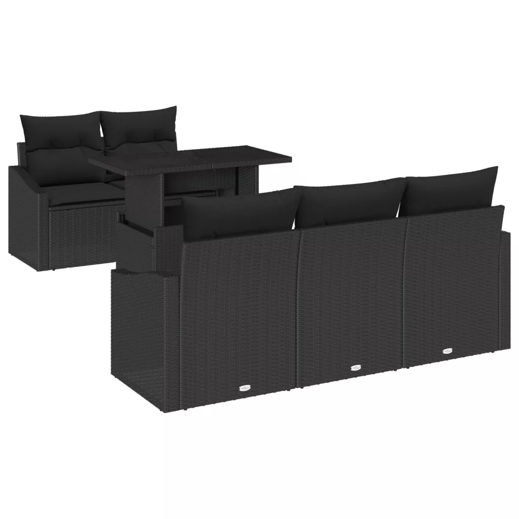 6 darabos Kerti Kanapé Szett Párnákkal Fekete Poli Rattan
