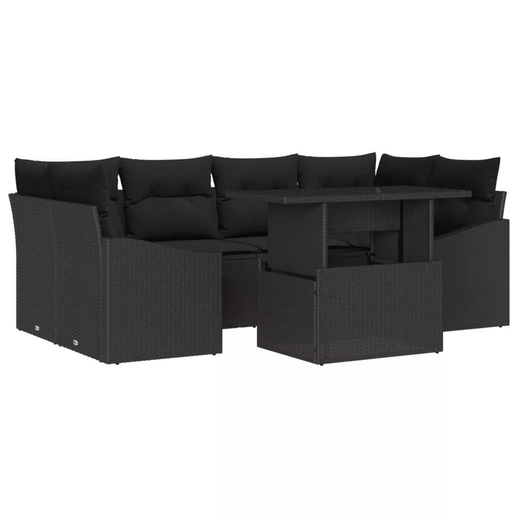 7 darabos kertibútor szett párnákkal, fekete poli rattan