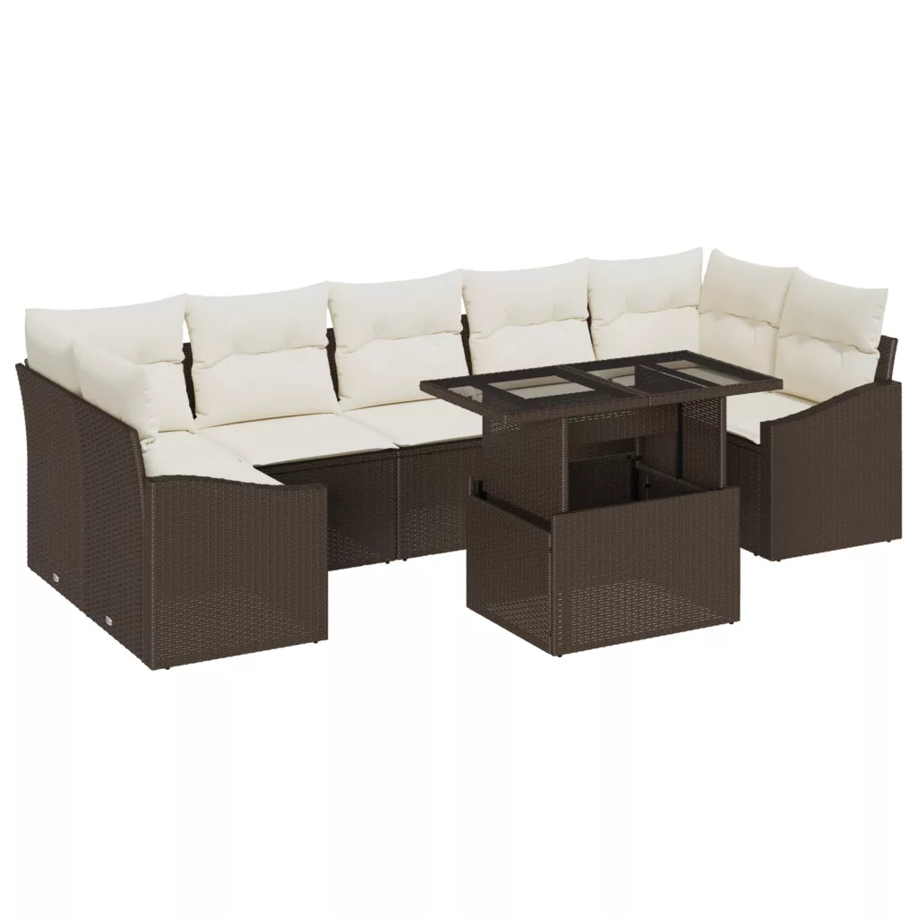 8 darabos kerti kanapészett párnákkal barna poli rattan