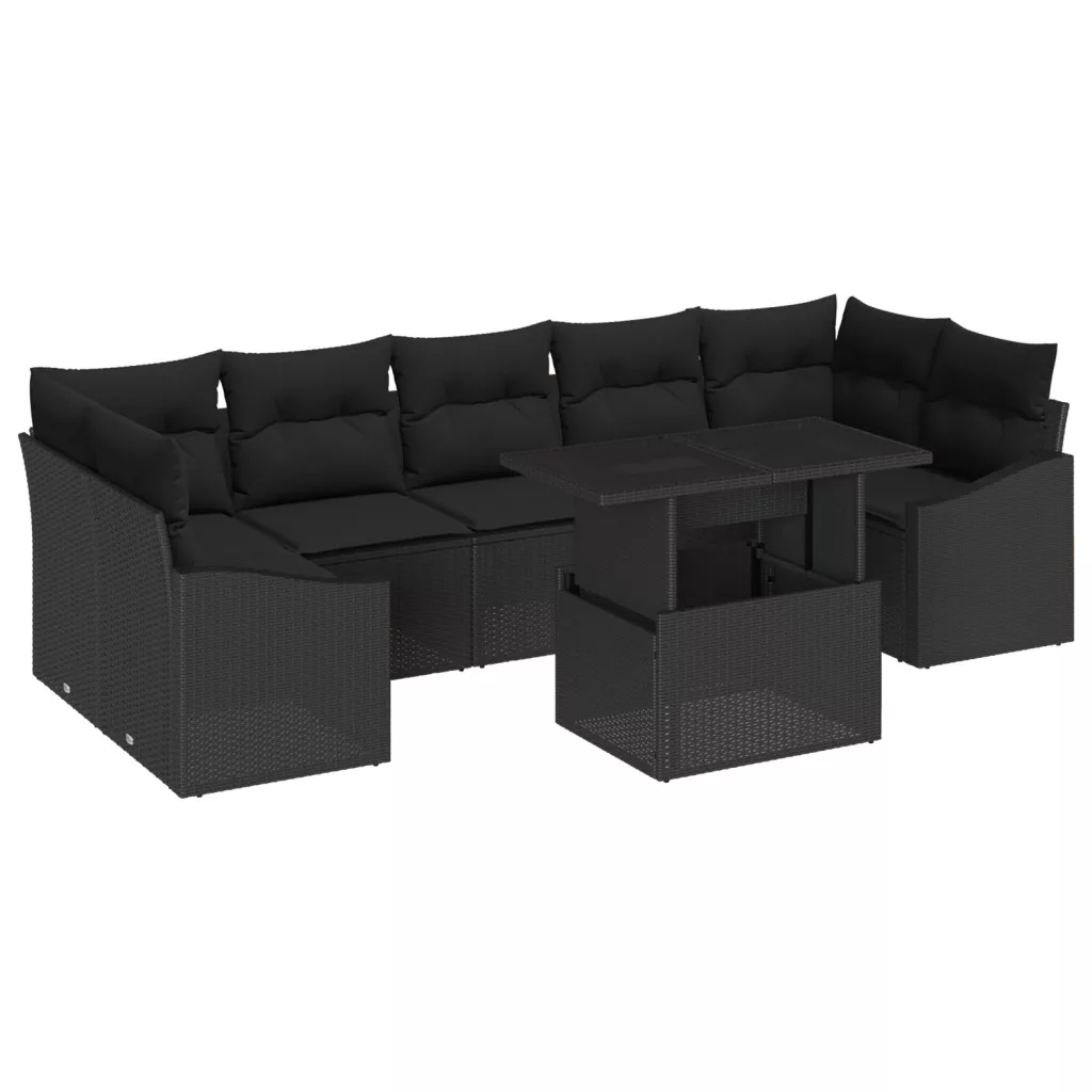 8 Darabos Kerti Kanapé Szett Párnákkal Fekete Polirattan