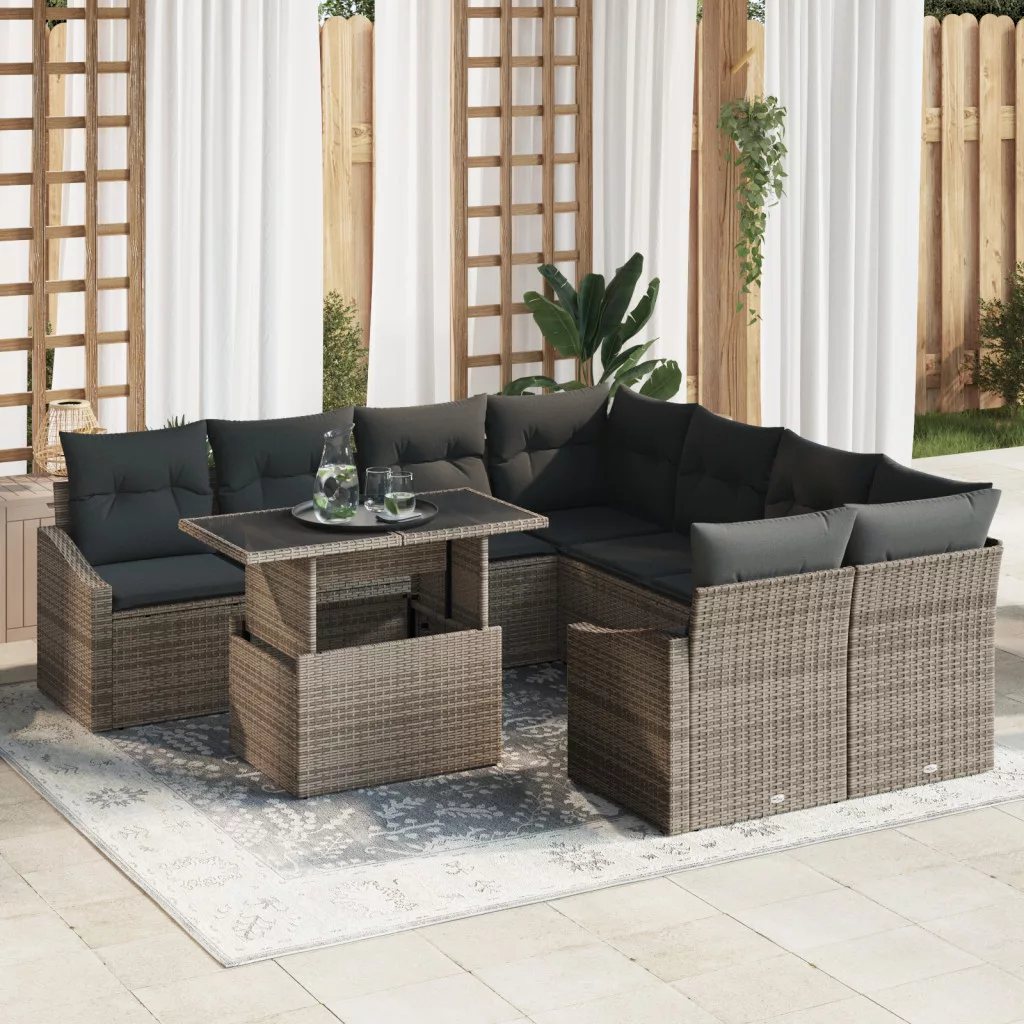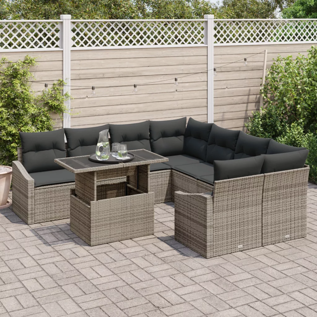 9 részes kerti kanapé szett párnákkal Szürke polirattan