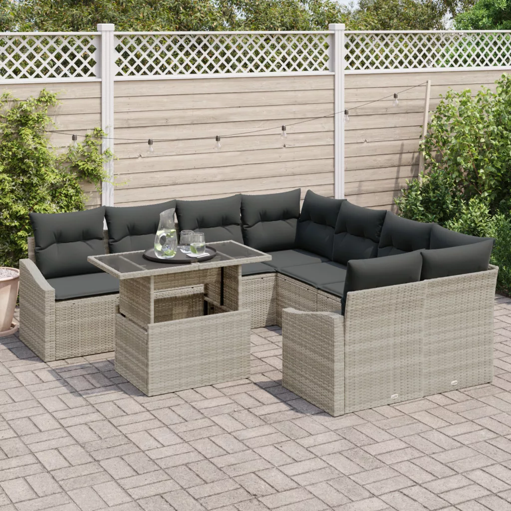 9 Részes Kerti Kanapé Szett Párnákkal Világosszürke Poli Rattan