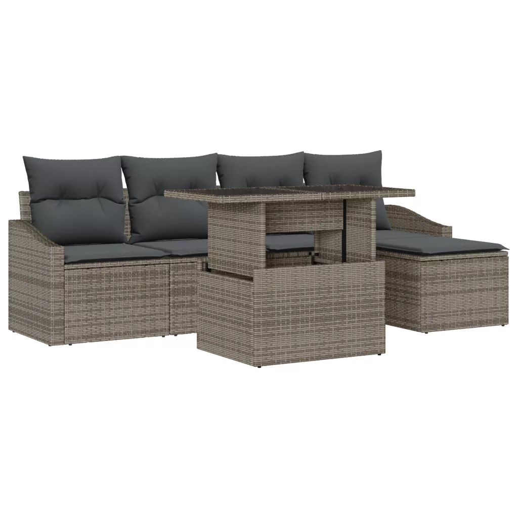 6 darabos Kerti Kanapészett Párnákkal Szürke Polirattan