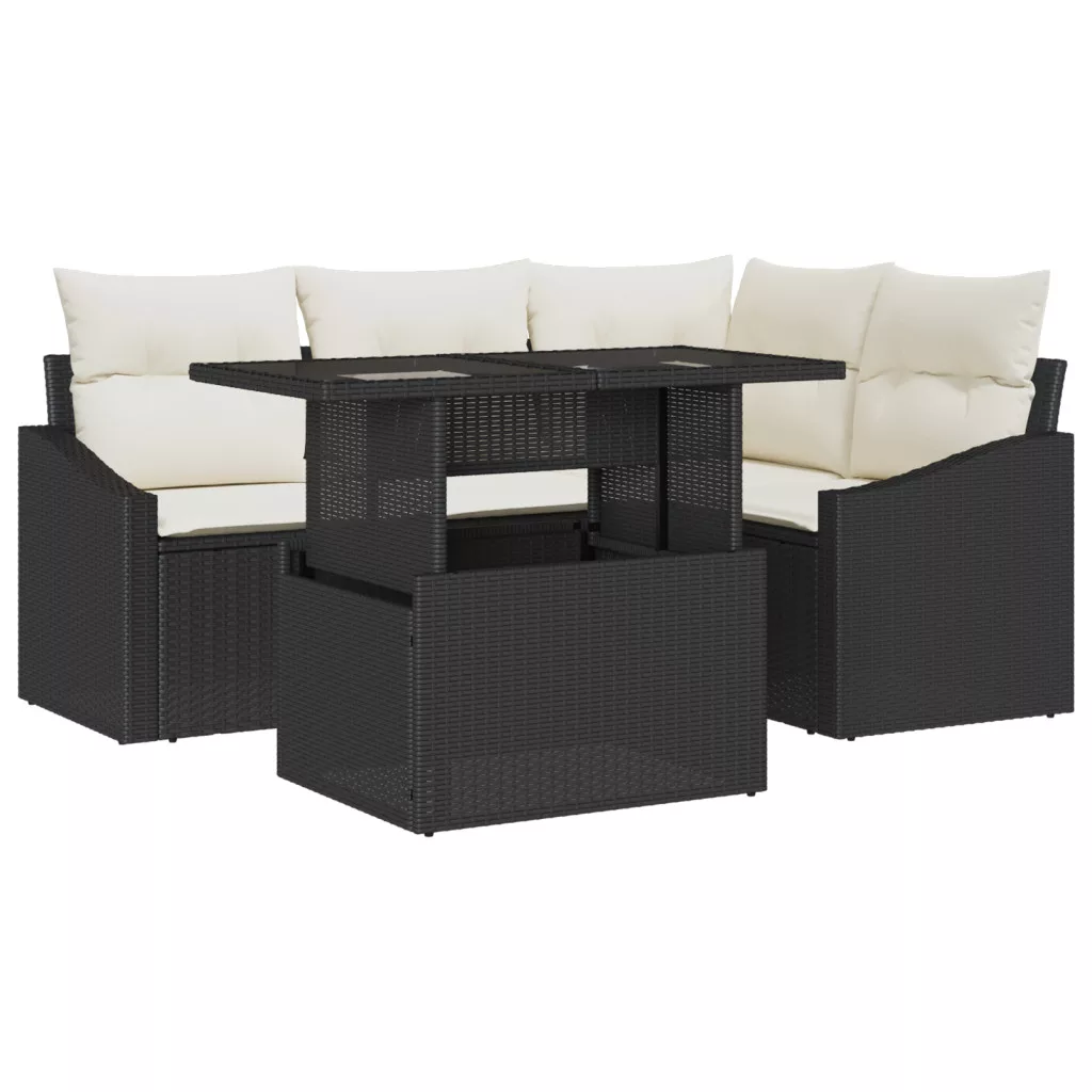 5 Darabos Kerti Kanapé Szett Párnákkal Fekete Poli Rattan