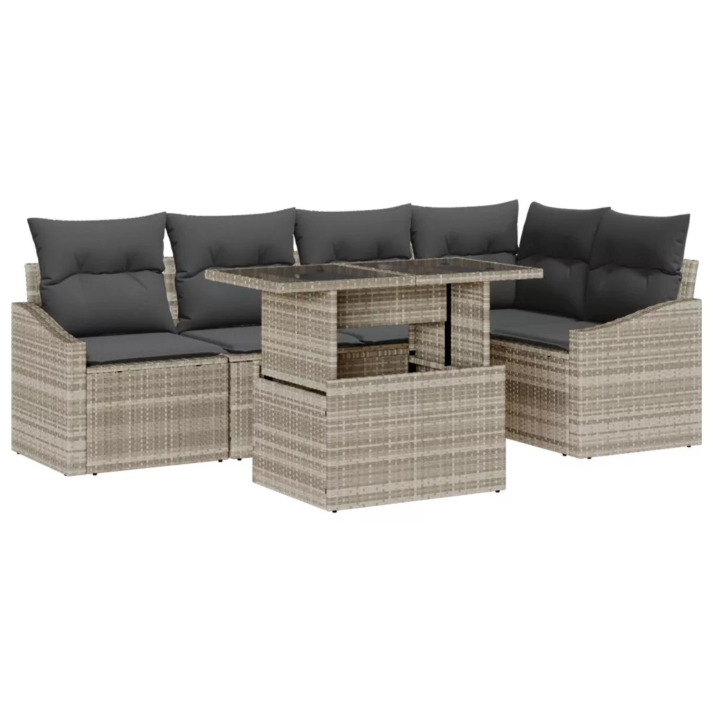 6 részes kerti kanapé szett párnákkal világosszürke poly rattan