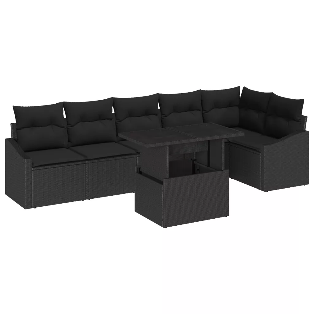 7 darabos kerti kanapé készlet párnákkal fekete polirattan