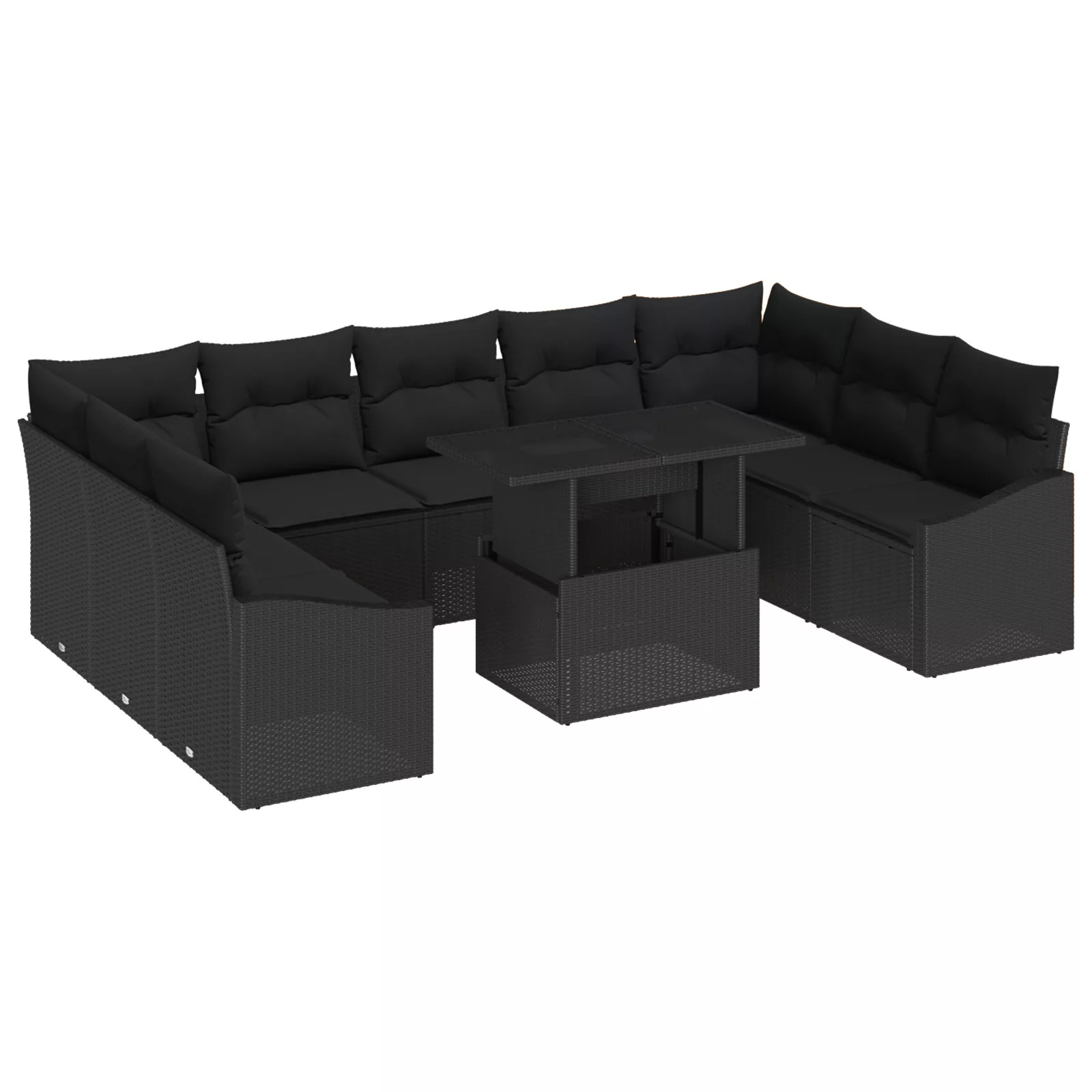 10 részes kerti kanapé szett párnákkal fekete poli rattan