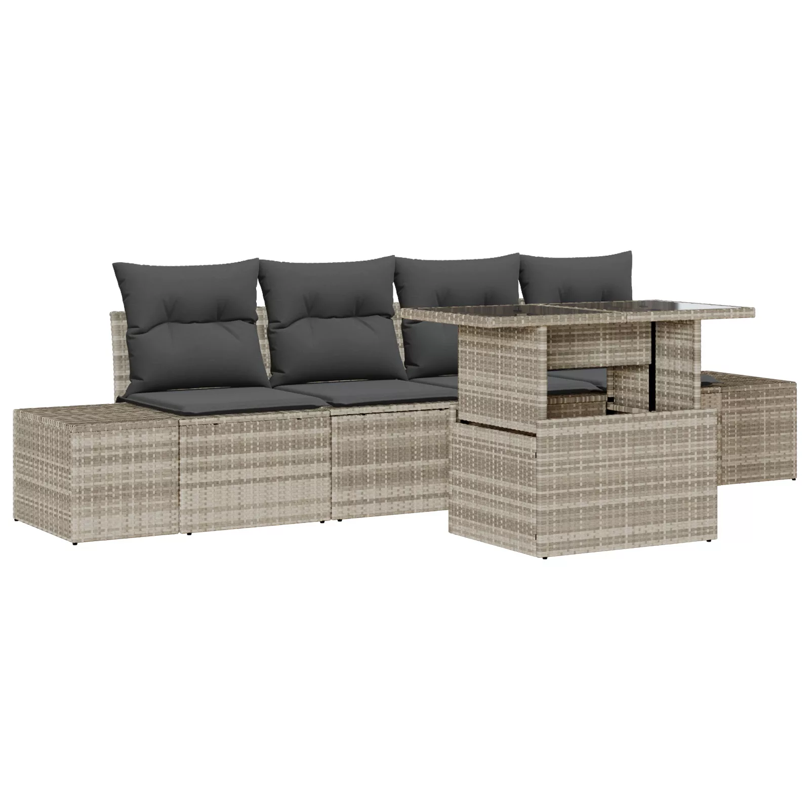5 Darabos Kerti Kanapé Szett Párnákkal Világosszürke Poli Rattan
