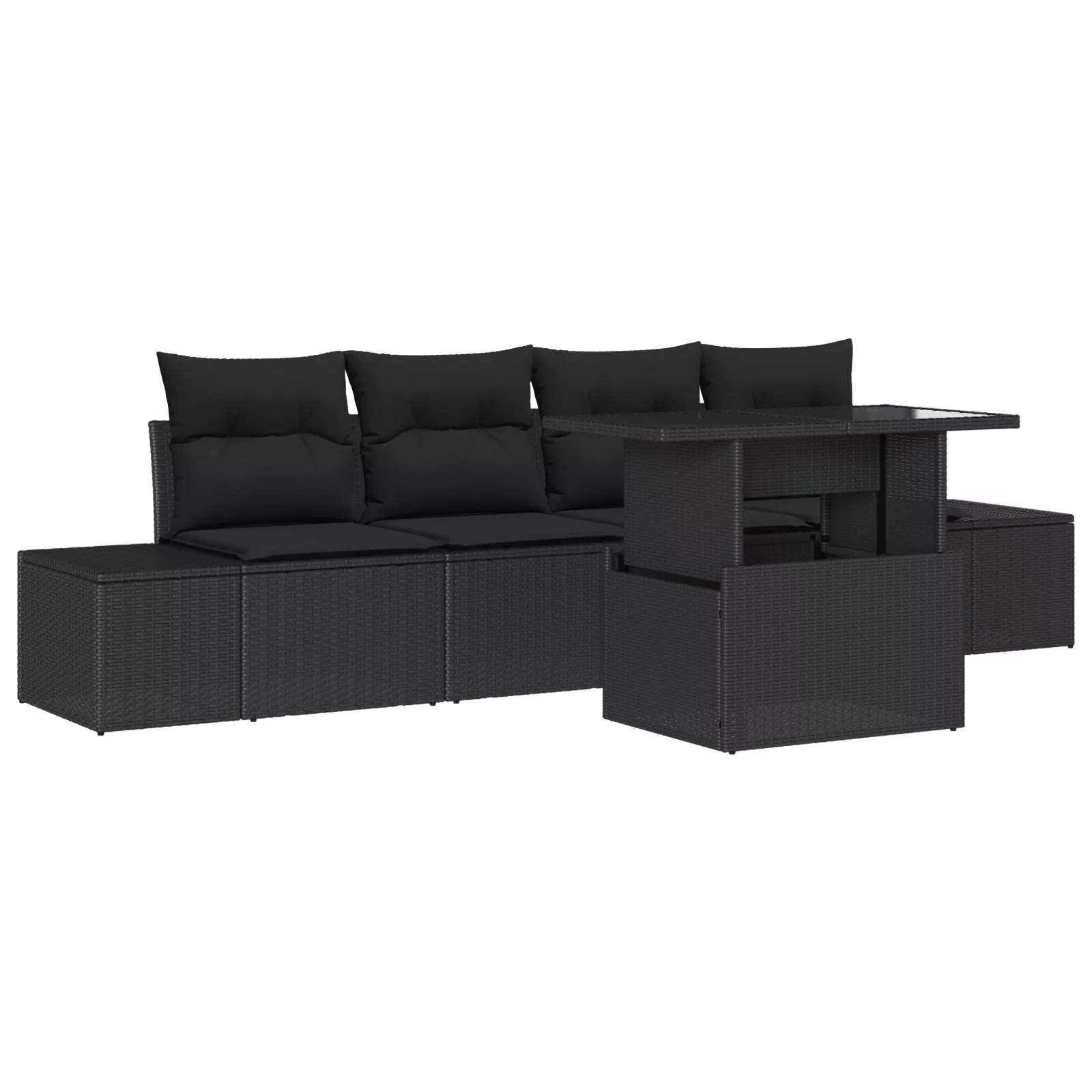5 darabos kerti kanapé szett párnákkal fekete poli rattan