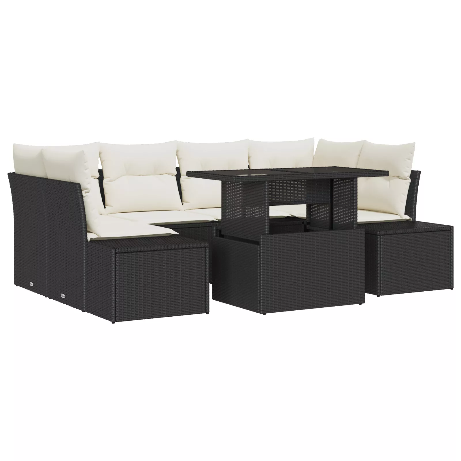 7 részes Kerti Kanapé Szett Párnákkal Fekete Polirattan