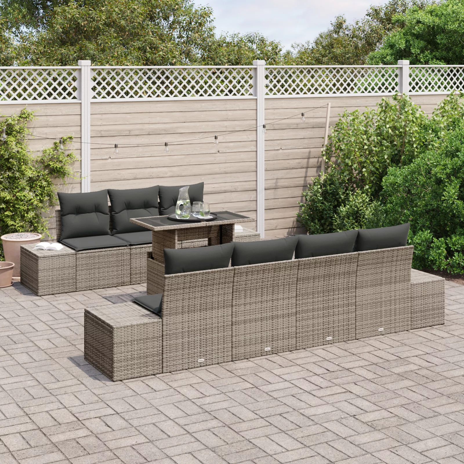 8 Darabos Kerti Kanapé Szett Párnákkal Szürke Polirattan