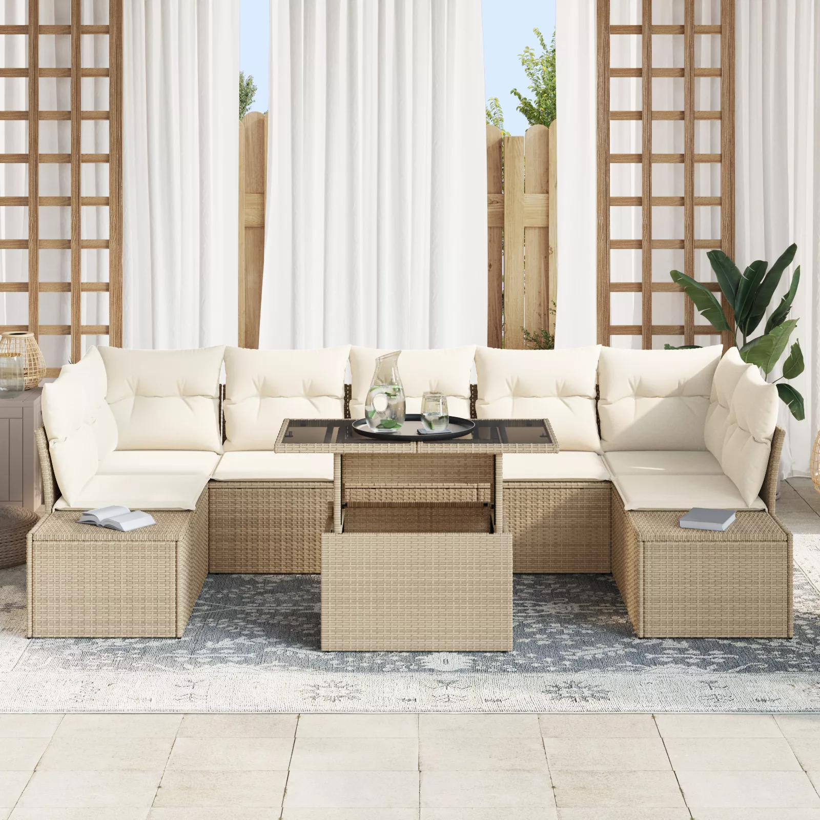 8 Részes Kerti Kanapé Szett Párnákkal Bézs Poli Rattan