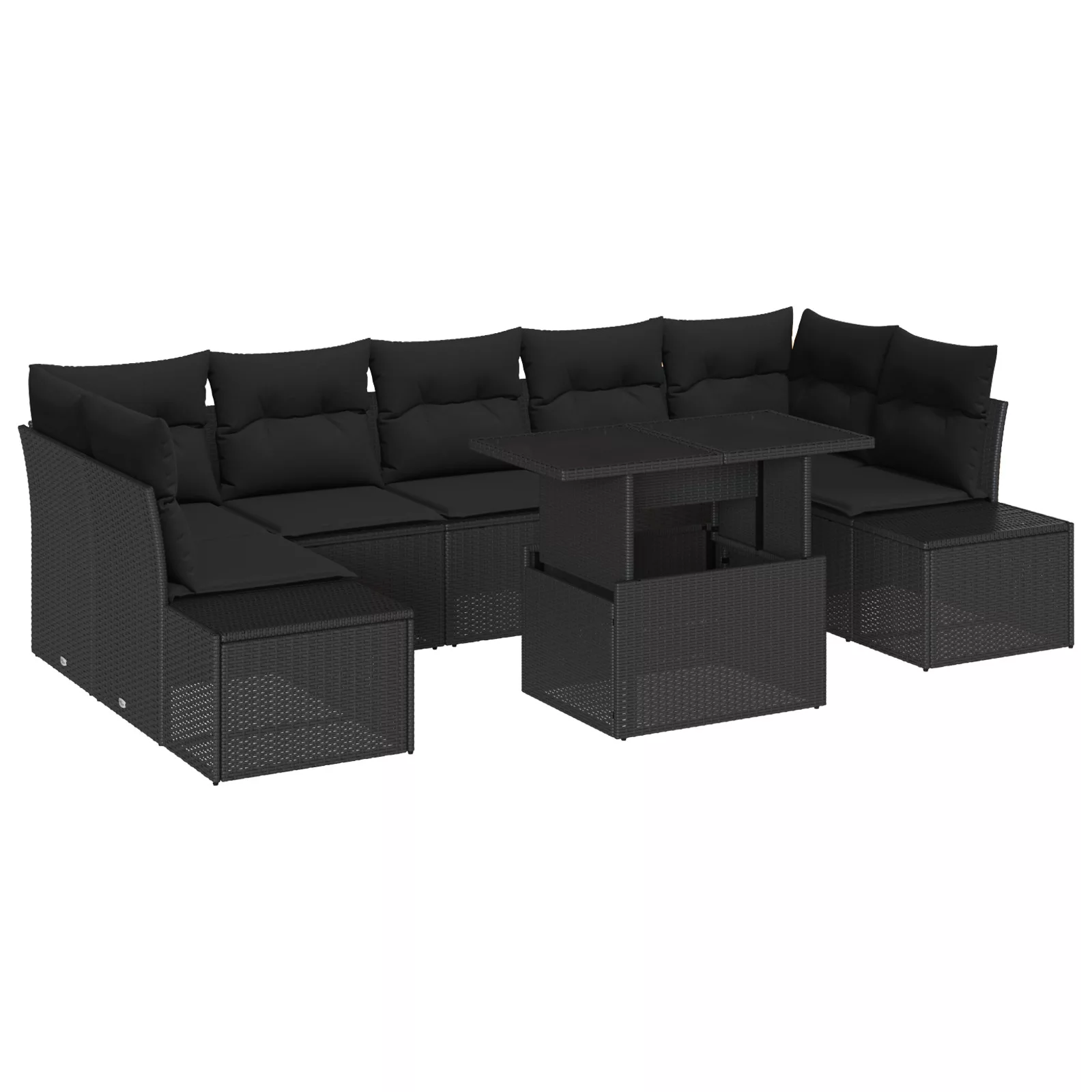 8 Darabos Kerti Kanapé Szett Párnákkal Fekete Poli Rattan