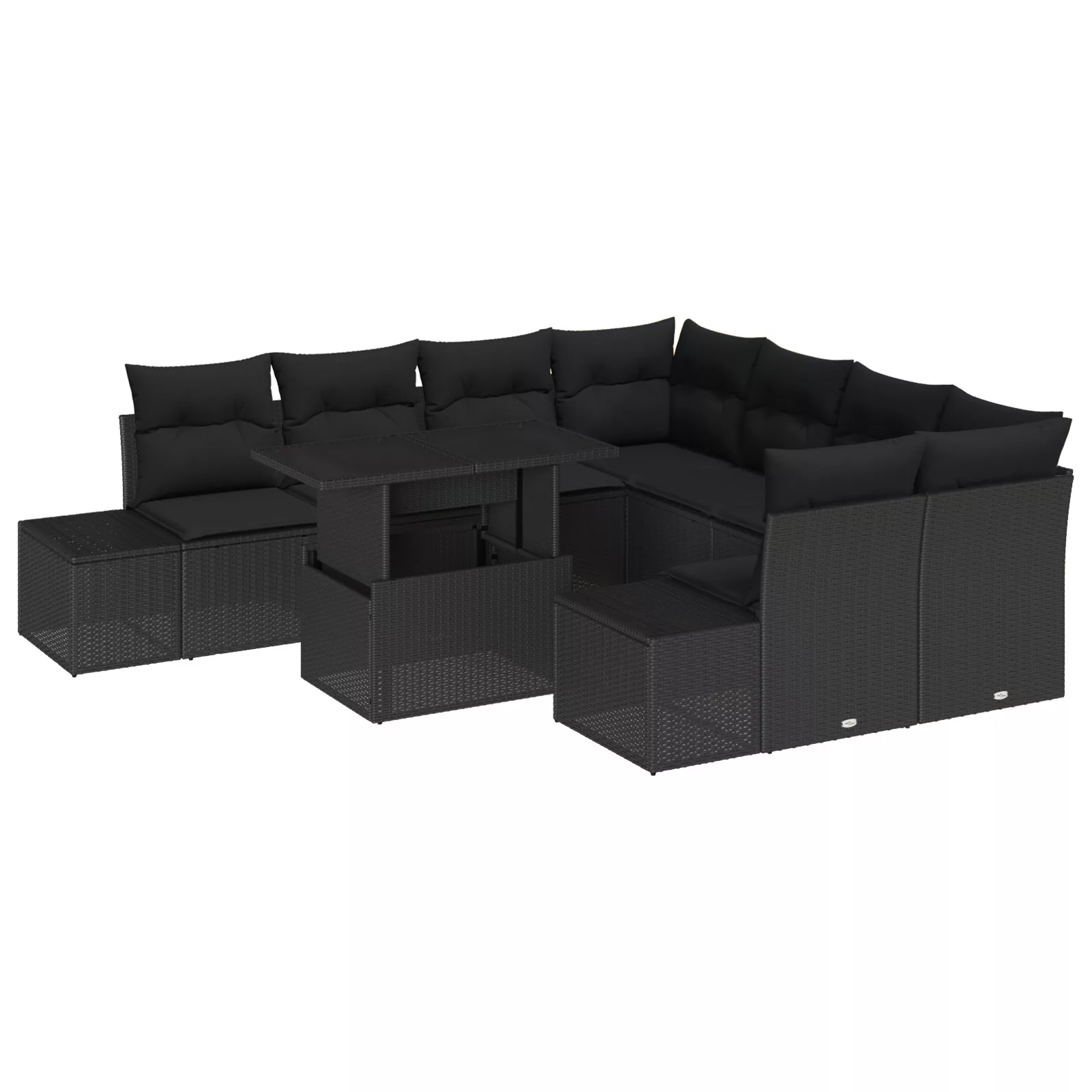 9 Darabos Kert Kanapé Szett Párnákkal Fekete Poli Rattan