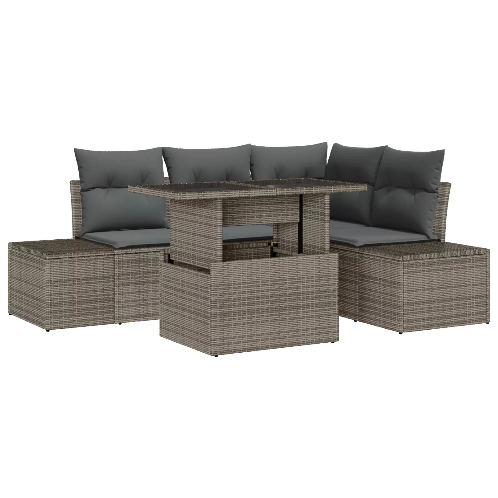5 részes kerti kanapészett párnákkal, szürke poli rattan