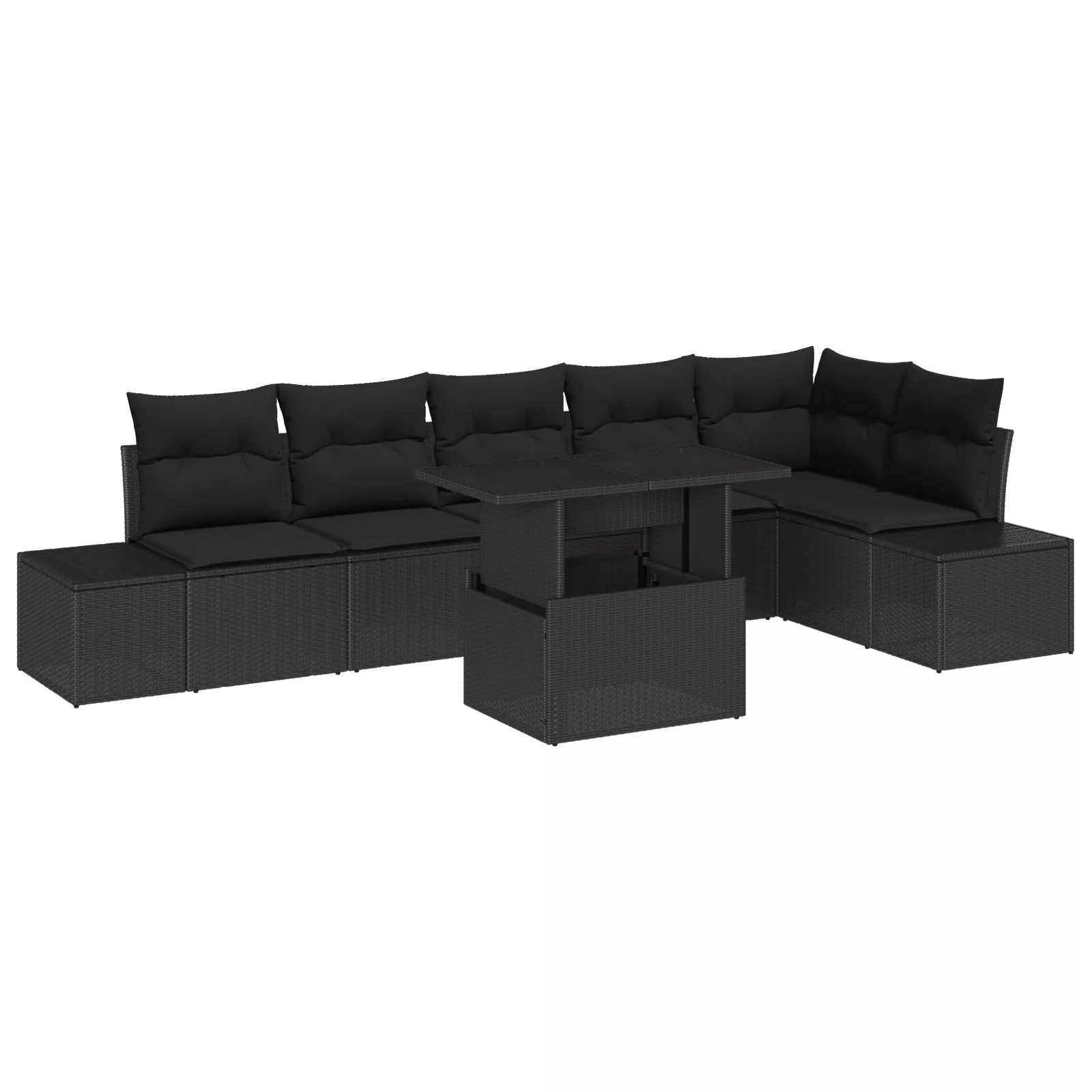 7 Részes Kert Kanapé Szett Párnákkal Fekete Poli Rattan
