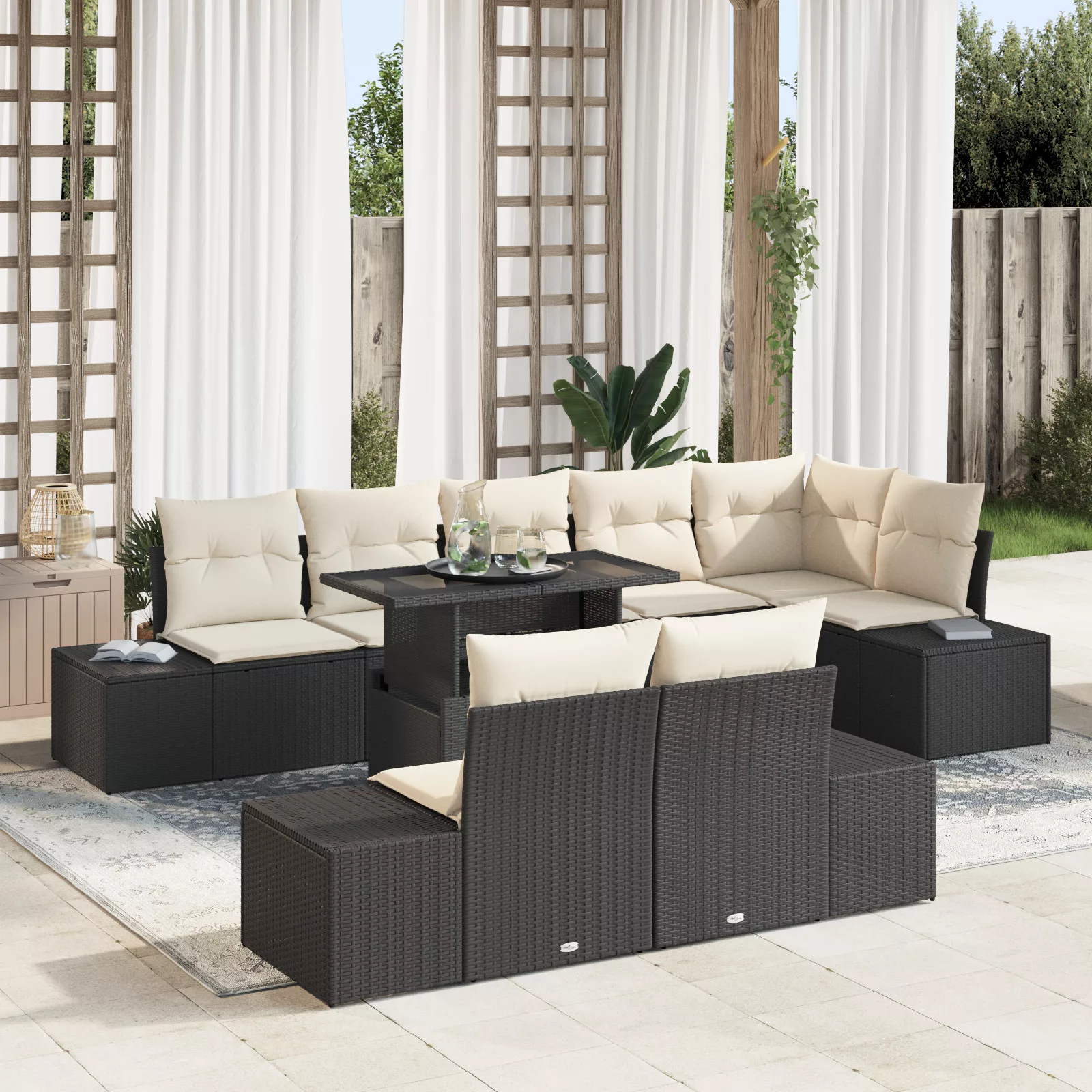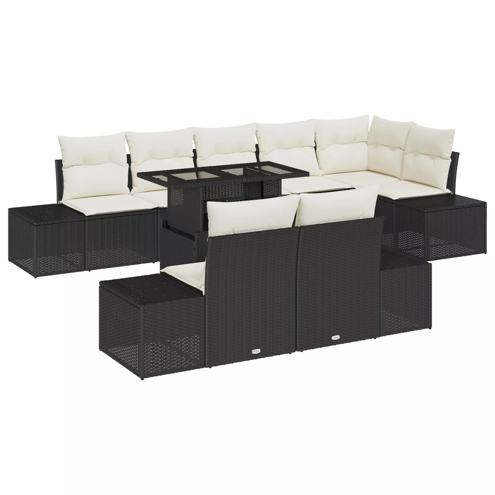 9 darabos kerti kanapé szett párnákkal fekete polirattan