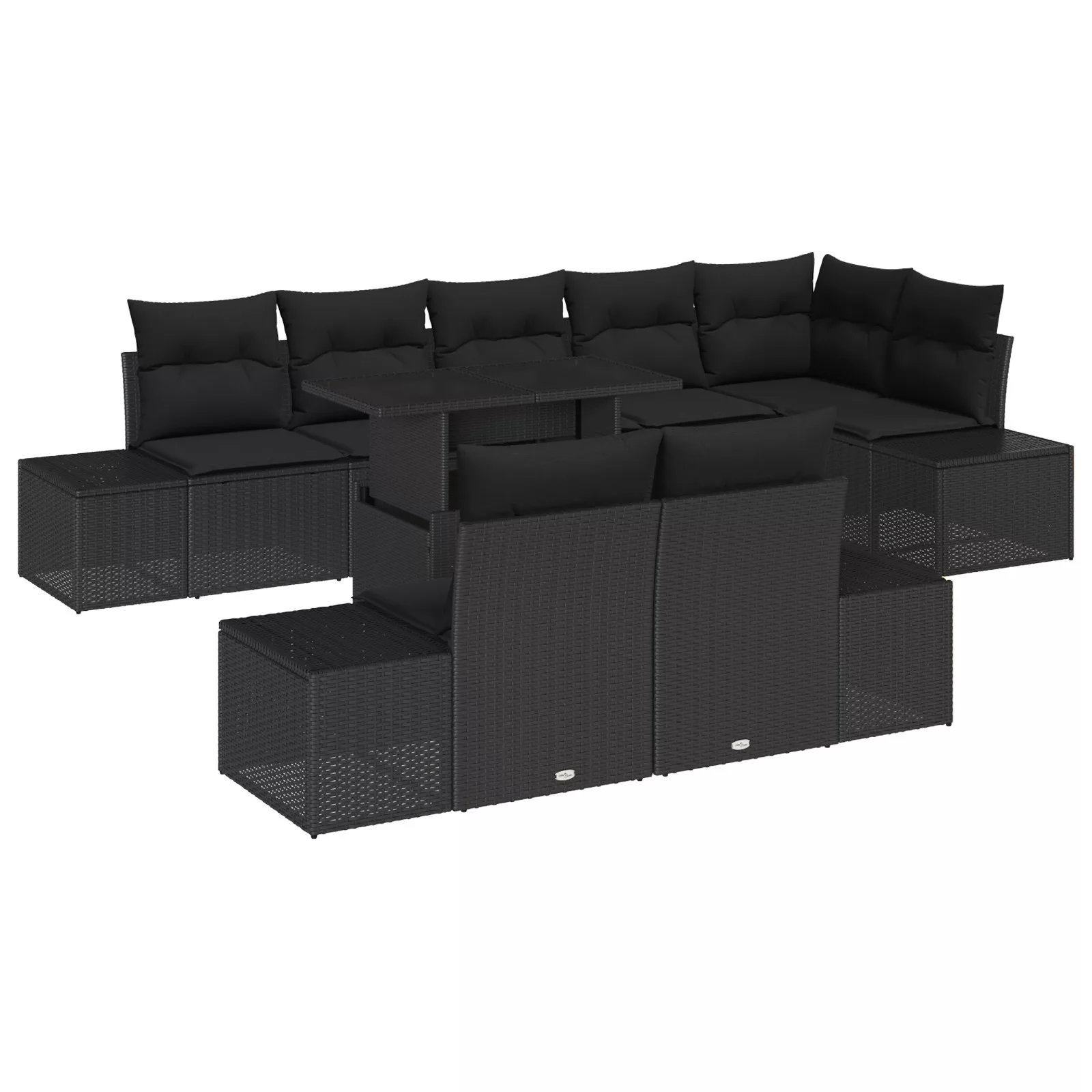9 darabos kerti kanapé szett párnákkal fekete poli rattan