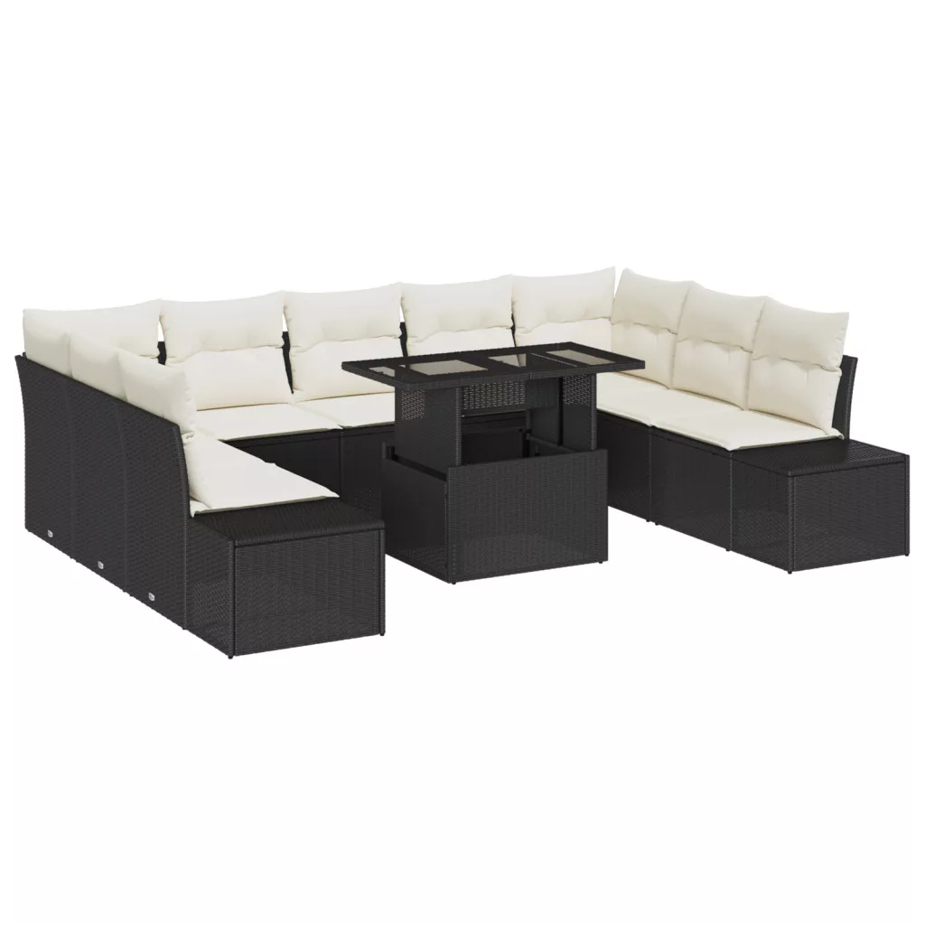 Ez a 10 darabos kertibútor szett jól ötvözi a stílust és a praktikumot, sok helyet ad a közös időtöltésekhez, és feldobja a kültéri tereid. A fekete és krém dizájn lehetővé teszi, hogy akár kilenc ember is kényelmesen elférjen, ráadásul modern hangulatot ad a terasznak vagy a kertnek - ideális a barátokkal és családdal töltött szuper időszakokhoz. Bőséges ülőkapacitás: Terjedelmes kialakítása akár 9 ember számára is kényelmes helyet nyújt, így ez a kanapészett bármilyen beltéri vagy kültéri találkozót élvezhetővé tesz, ideális családi mulatságokhoz vagy baráti összejövetelekhez. Trendi dizájn: Az egyedi fekete és krém szín, amit egy menő minimalista stílus egészít ki, teszi lehetővé, hogy ez a kerti kanapészett szuperül illeszkedjen a különféle dekorációs hangulatokhoz, legyen az modern vagy klasszikus. Integrált tárolás: Minden ülőelem hasznos tárolók tárolására alkalmas, ideálisak a párnák vagy kisebb kültéri dolgok elrejtésére, így mindig rendben tarthatod a tered. Tartós felépítés: Tartós szintetikus poli rattanból készült, beszerelt kerettel, ez a bútor optimális időjárásállósággal bír, biztosítva, hogy hetekig, hónapokig jól nézzen ki a kültéri körülmények között. Kényelmes párnák: A párnák zippel záródnak, így könnyen karbantarthatók és szuper kényelmesek, hívogatva a lazításra - tökéletes hosszú találkozókhoz.
