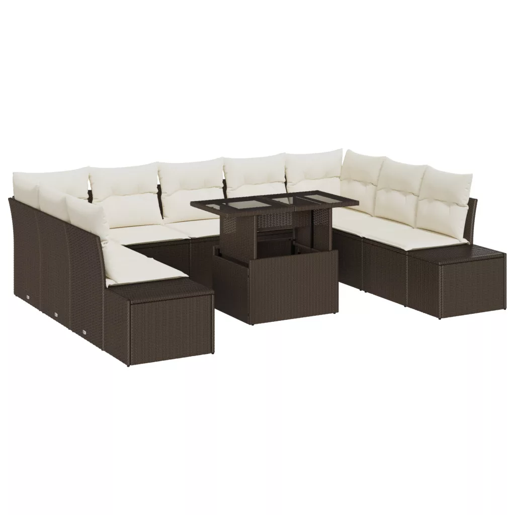 10 darabos kerti kanapékészlet párnákkal barna poli rattan