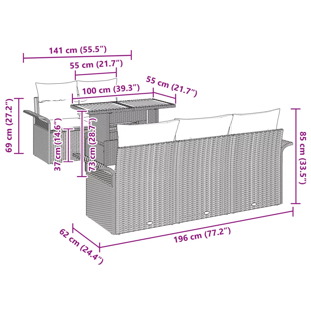 Ez a kerti kanapé szett tökéletes választás a kültéri találkozókhoz! Ideális pihenéshez vagy szórakozáshoz a napfényben. A sötét rattan és a puha bézs párnák elegáns, hívogató hangulatot teremtenek bármely erkélyen, teraszon vagy kertben. Stílusos konfiguráció: A modern dizájn jól illik a különböző kültéri stílusokhoz, így a teraszod vagy a kerted nagyszerűen néz ki. Kiváló választás pezsgő összejövetelekhez vagy laza hétvégékhez, lenyűgöző középpont a szabadban. Kényelmes ülőhely: Tervezve öt vendég kényelmes elhelyezésére, a párnázott ülések mindenkit kényelmesen tartanak, akár kávéznak, akár grilleznek! Robosztus konstrukció: Kiváló minőségű UV-álló rattanból és vízálló szövetből készült, ez a kerti szett minden időjárásnak ellenáll. Élvezd a kültéri bútorokat anélkül, hogy aggódnod kellene, hiszen kültéri használatra készült. Kényelmes tárolás: A kanapé okos tároló funkcióval rendelkezik, hogy a kültéri apróságokat kéznél tartsa, de elrejtve, így ideális rendezett összejövetelekhez. Könnyű karbantartás: Ez a kerti szett praktikus, leválasztható és mosható párnahuzatokkal rendelkezik. Az állapot megőrzése pofon egyszerű, így több időt élvezhetsz és kevesebbet takaríthatsz.
