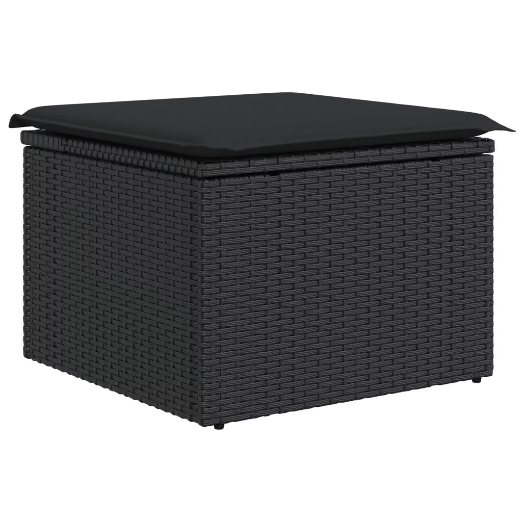 9 darabos kerti étkező szett párnákkal Fekete Poli Rattan Akác