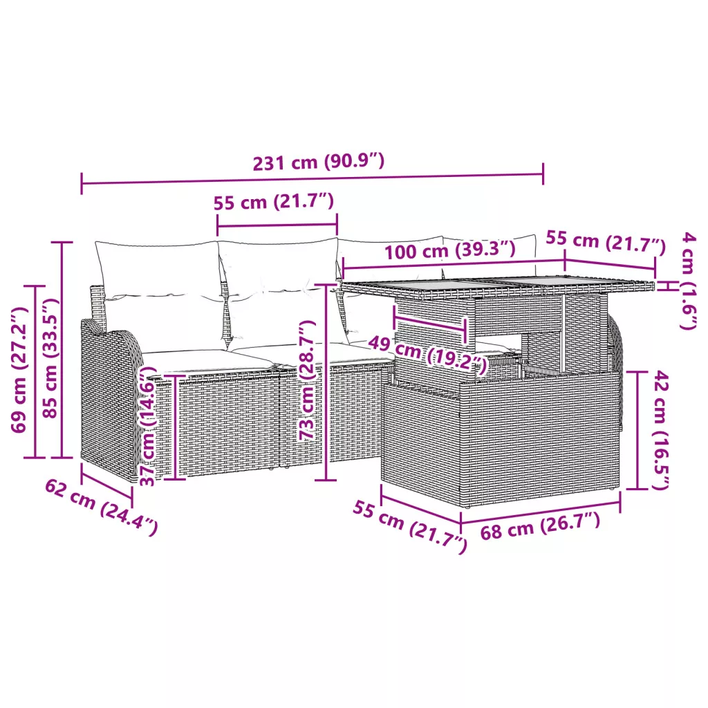 5 részes kerti kanapé szett párnákkal Szürke Polirattan Akácia