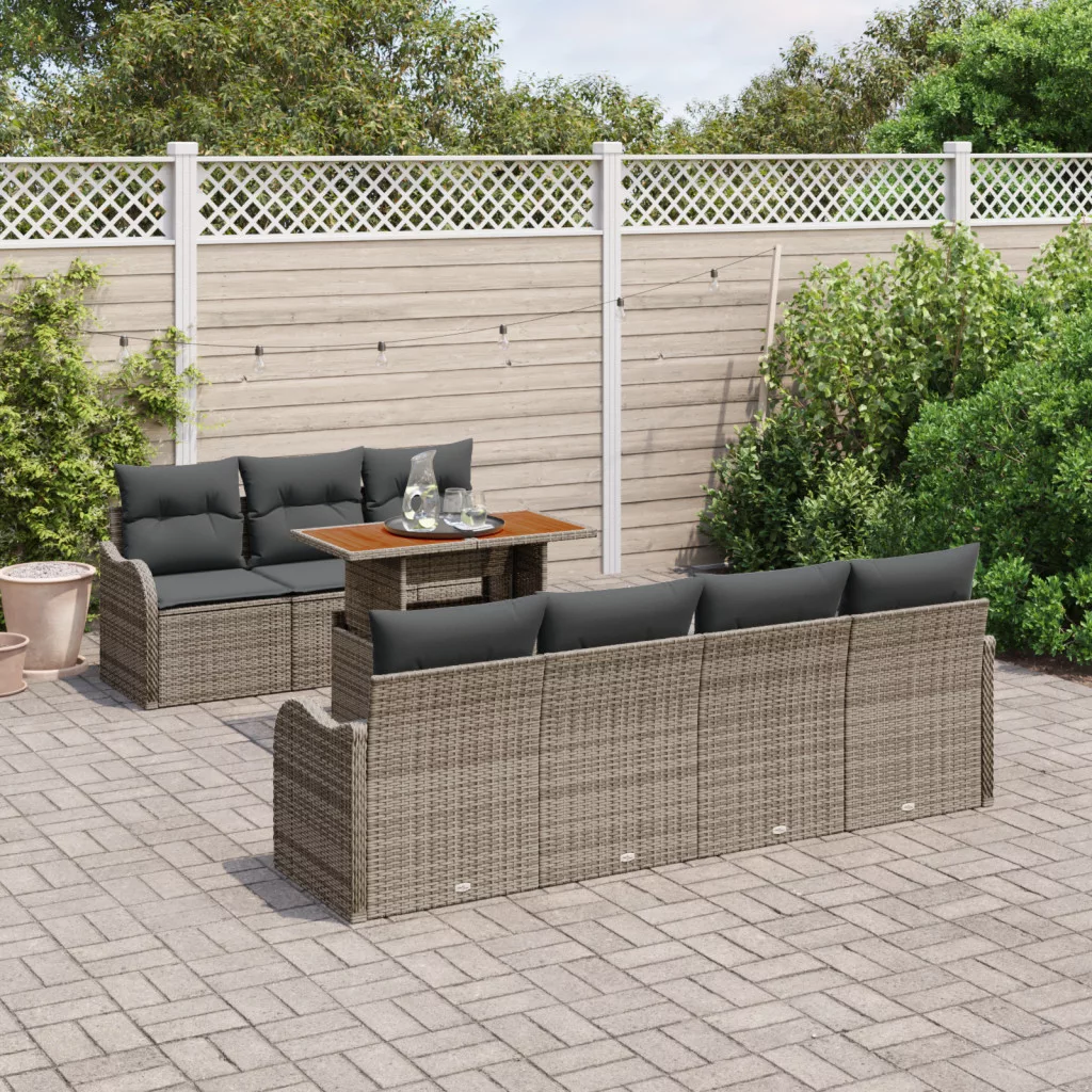 8 darabos kerti kanapészett párnákkal szürke poli rattan akácia