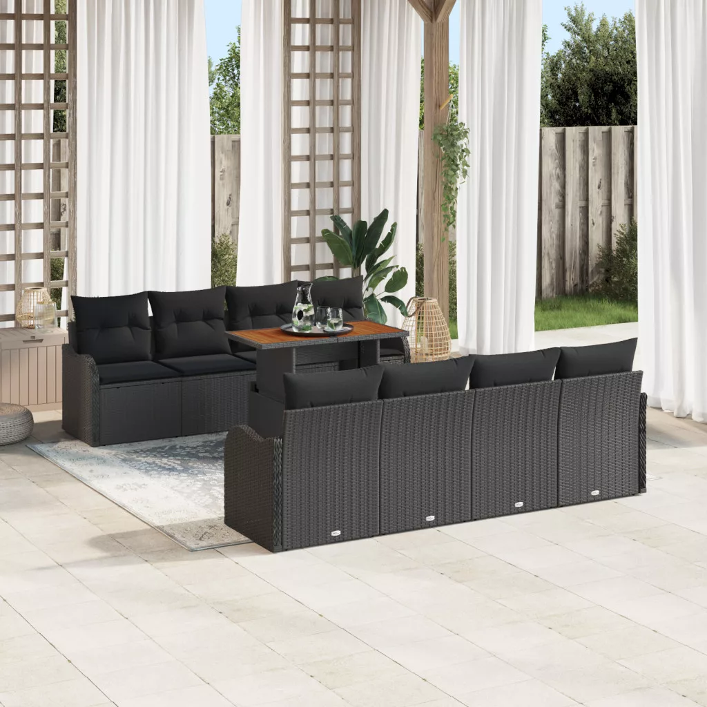 9 Darabos Kerti Kanapé Szett Párnákkal Fekete Poli Rattan Akác