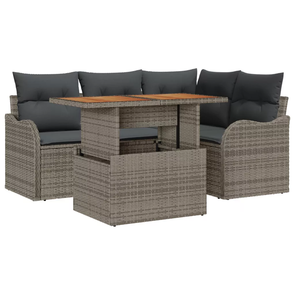 5 részes kerti kanapé szett párnákkal, szürke polirattan akácia