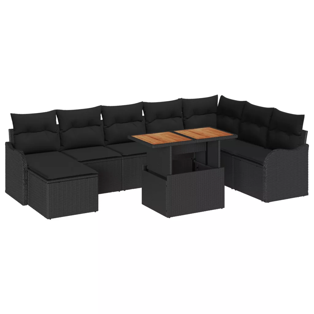 9 darabos kerti kanapé szett párnákkal Fekete Poli Rattan Akác