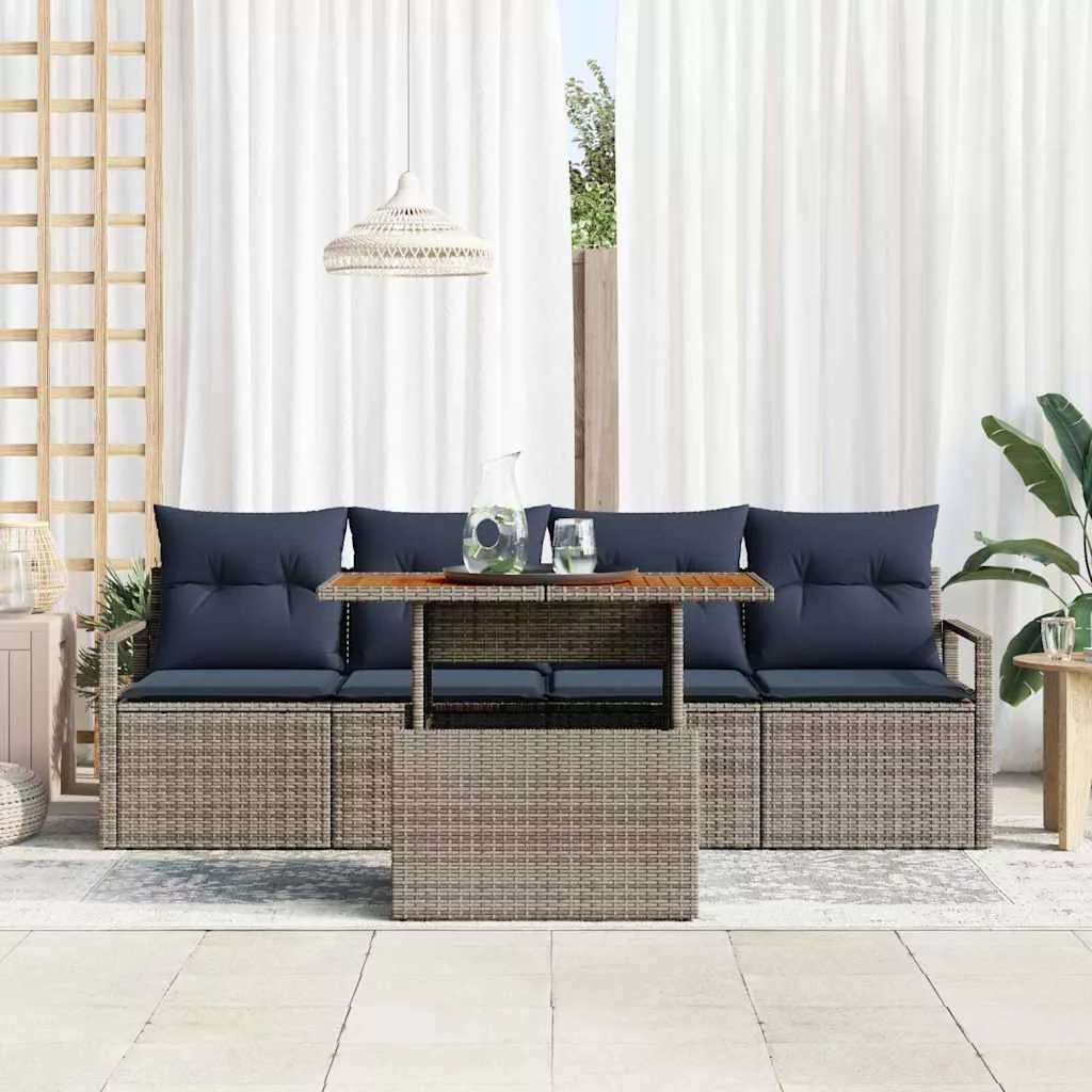 Kerti Kanapé Szett párnával 5 pcs szürke és sötétkék