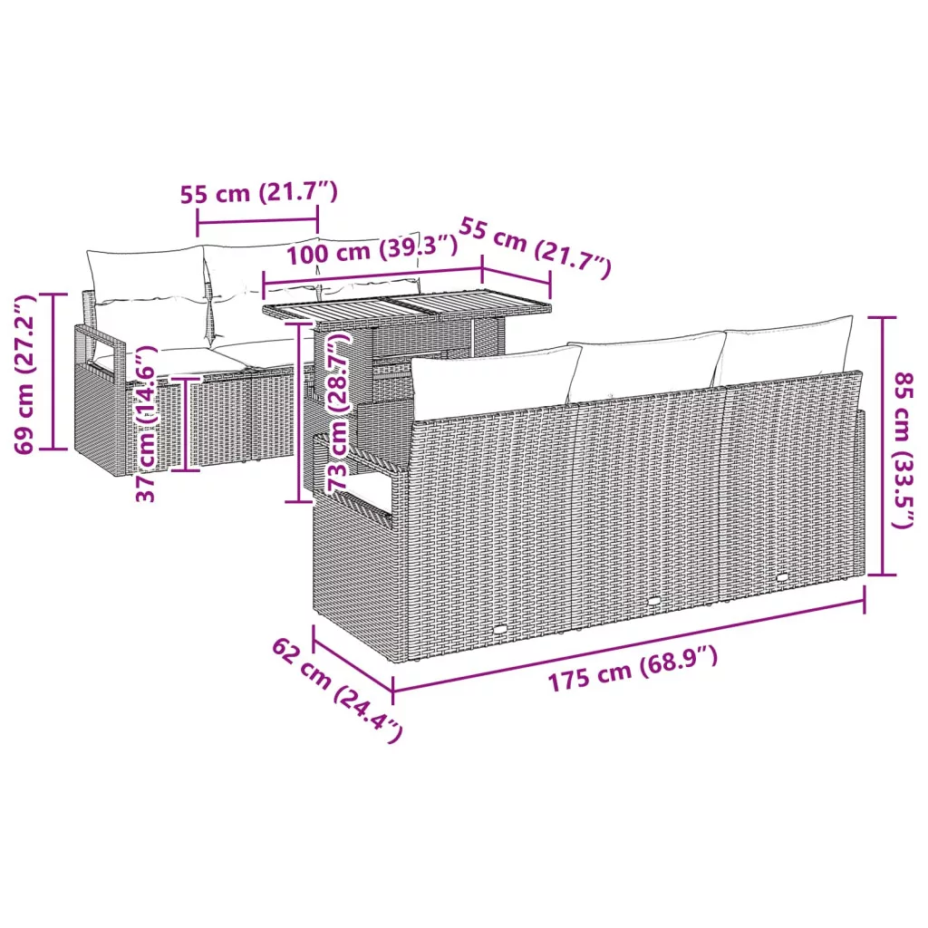 Kerti Kanapé Szett párnával 7 pcs szürke és sötétkék