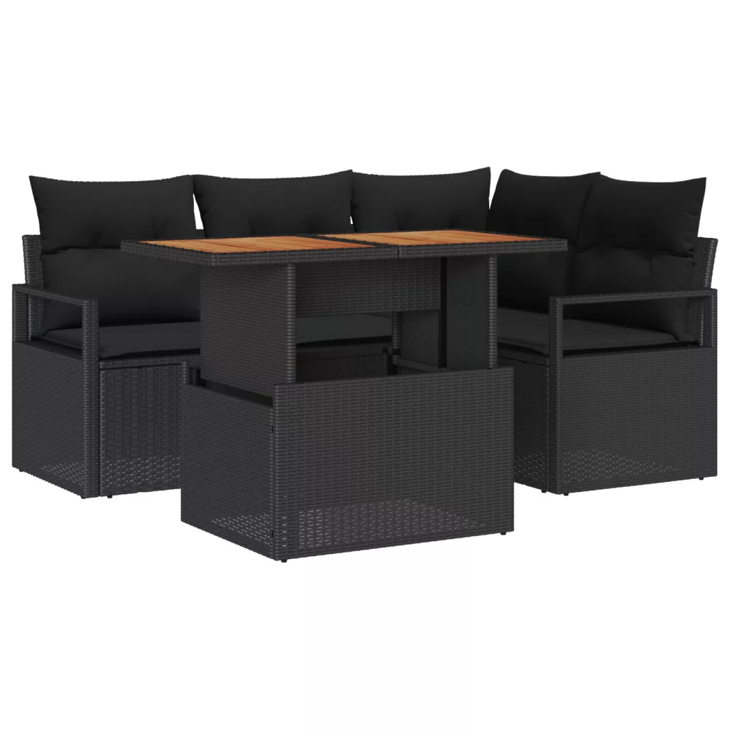 5 részes kerti kanapé szett párnákkal Fekete Polirattan Akác