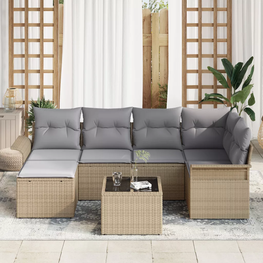 7 darabos Kerti Kanapé Szett Párnákkal Fekete Polirattan