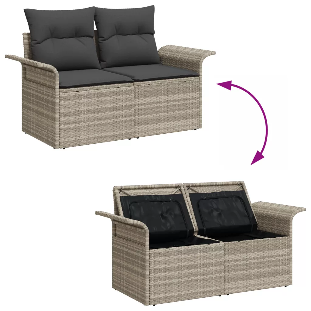 6 darabos Kerti Kanapé Szett Párnákkal Világosszürke Poli Rattan