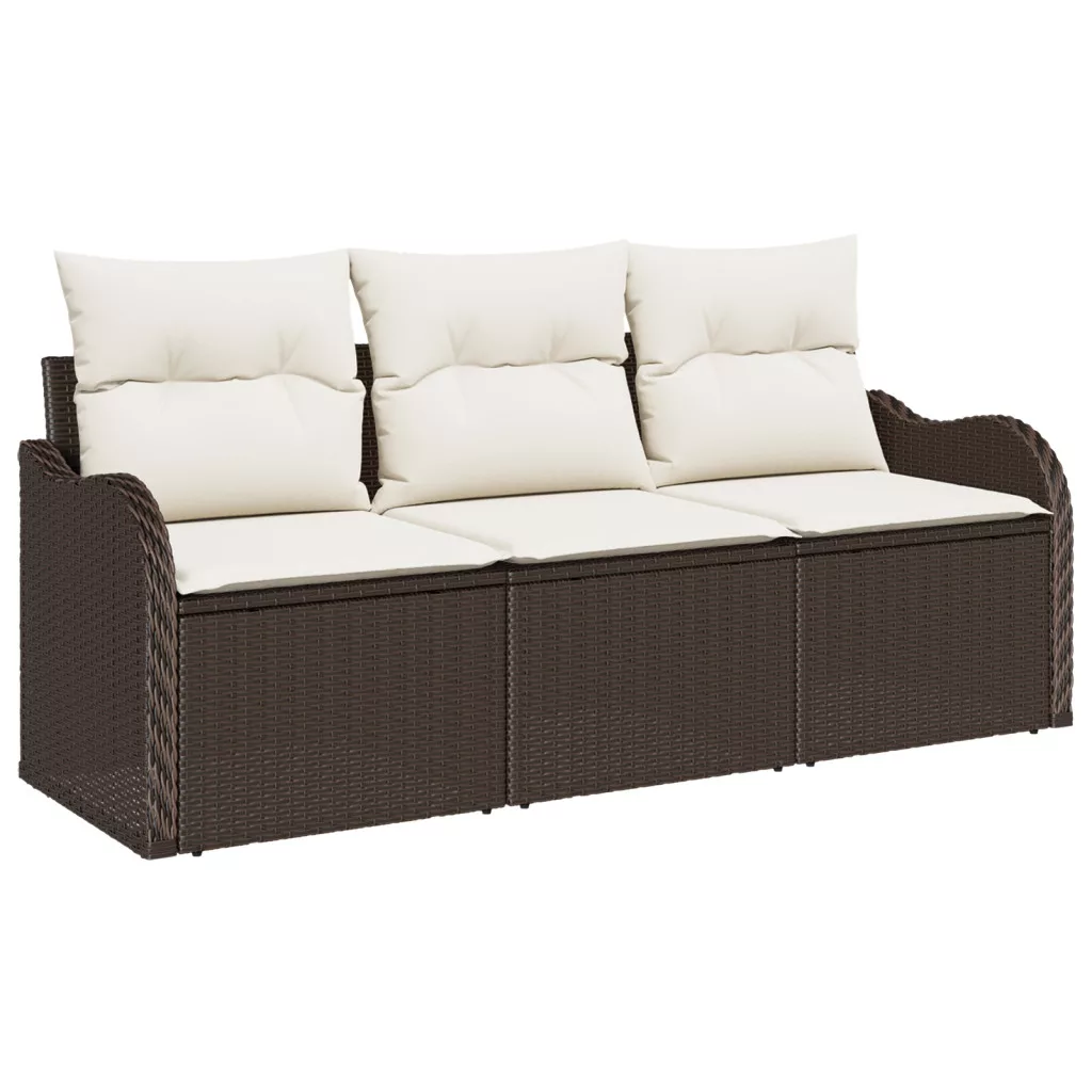 3 darabos kert kanapé szett párnákkal barna poli rattan