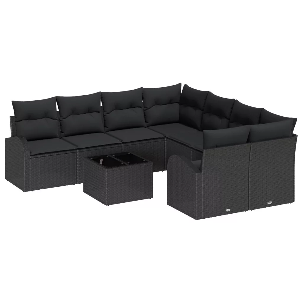 9 Darabos Kerti Kanapé Szett Párnákkal Fekete Poli Rattan
