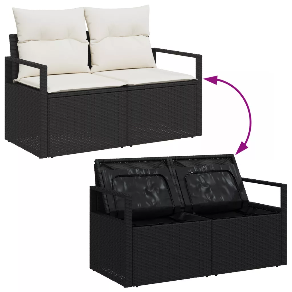 3 Darabos Kerti Kanapé Szett Párnákkal Fekete Poli Rattan