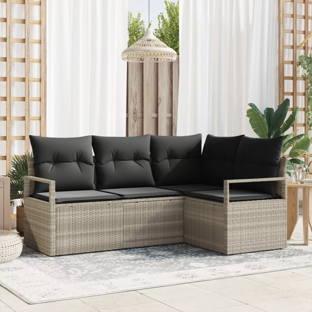 4 darabos kertibútor szett párnákkal Világosszürke Poli Rattan