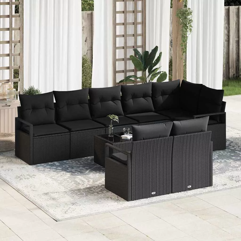 Kerti Kanapé Szett párnával tárolóval 9 pcs Fekete polirattan