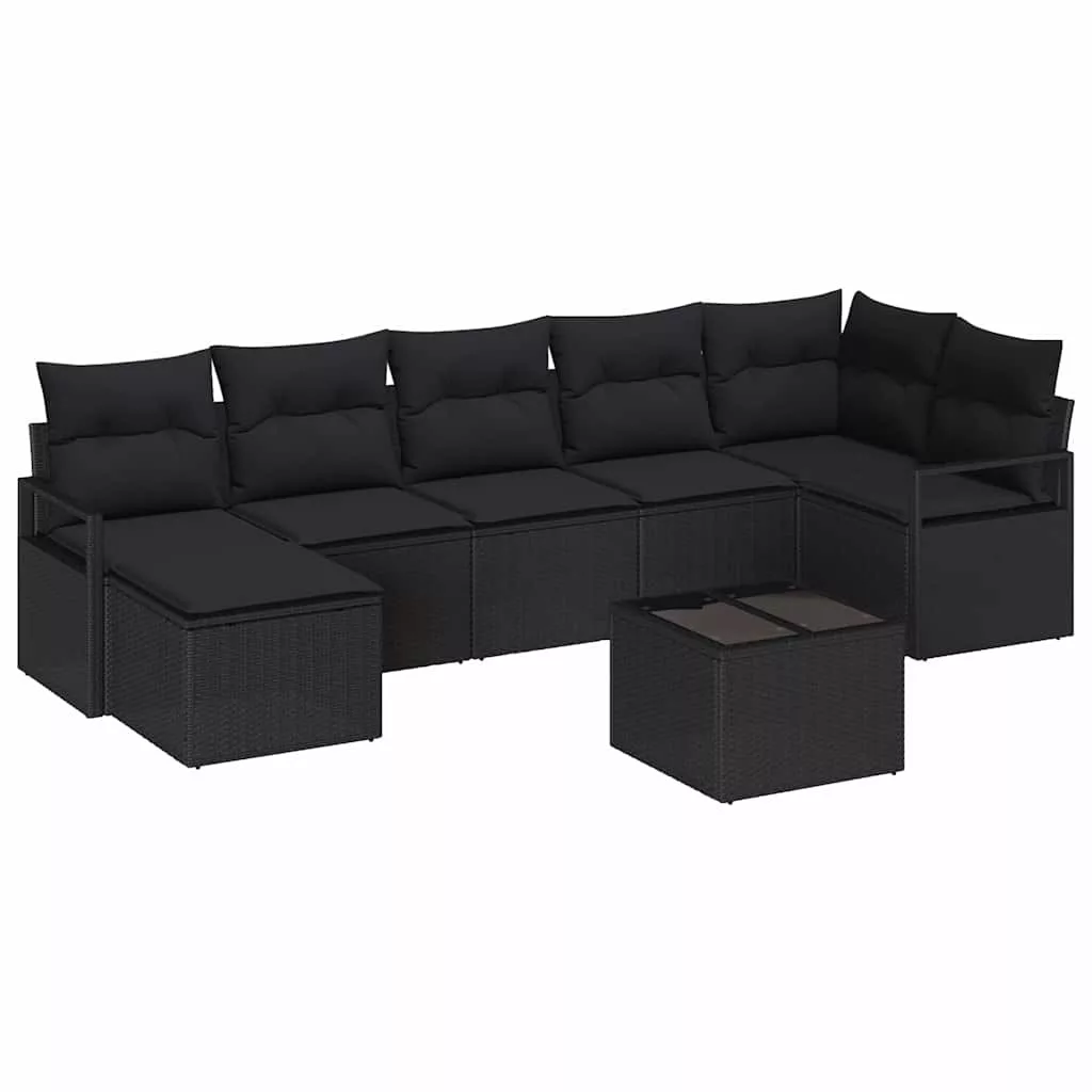 Kanapé Szett párnával tárolóval 8 pcs Fekete polirattan