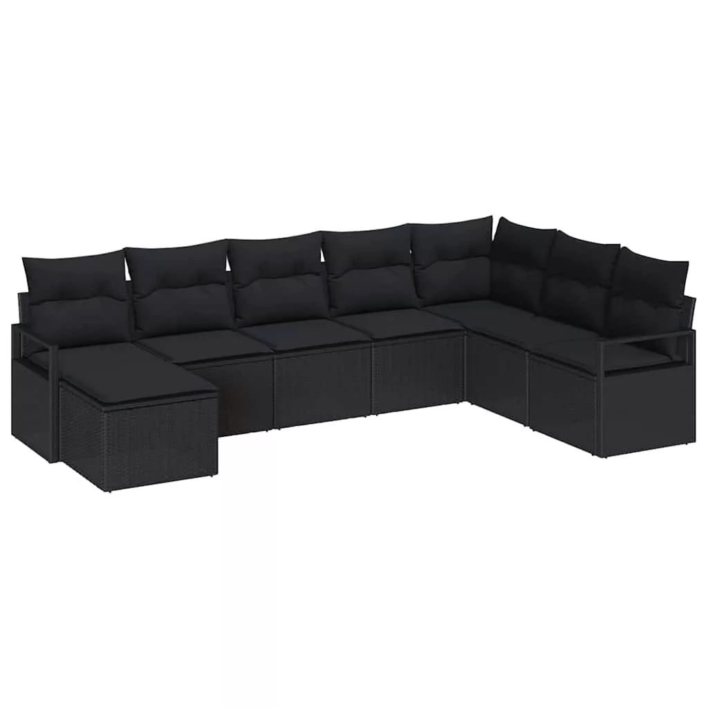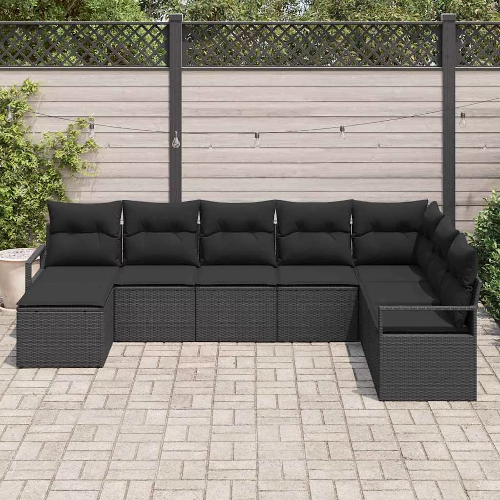 Kanapé Szett párnával tárolóval 8 pcs Fekete polirattan