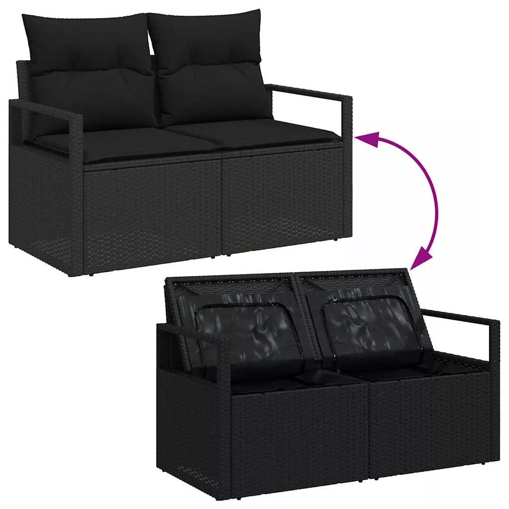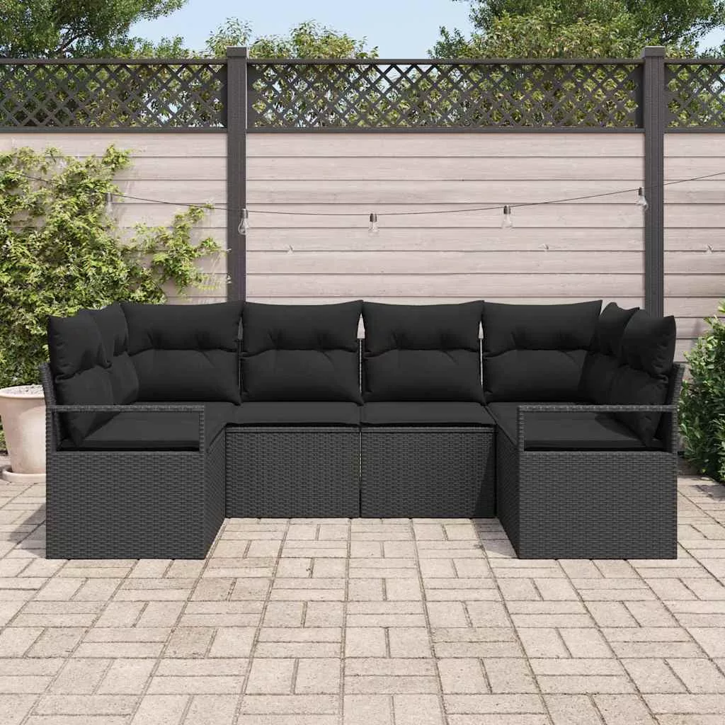 Kerti Kanapé Szett párnával tárolóval 6 pcs Fekete polirattan