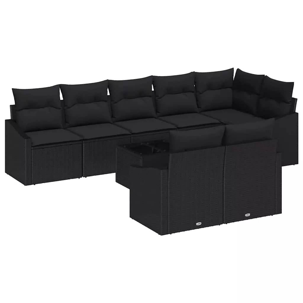 Kerti Kanapé Szett párnával tárolóval 9 pcs Fekete polirattan