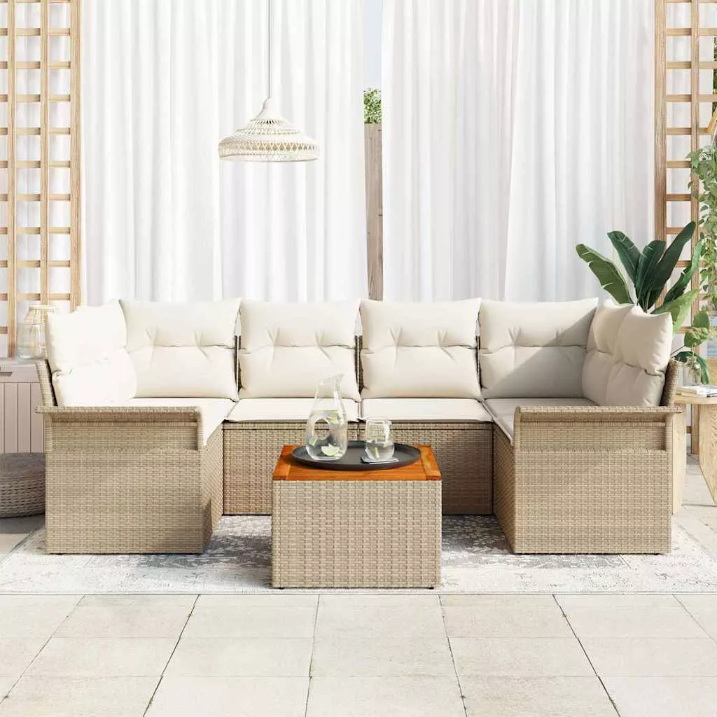 Kerti Kanapé Szett párnával tárolóval 7 pcs Beige és krém