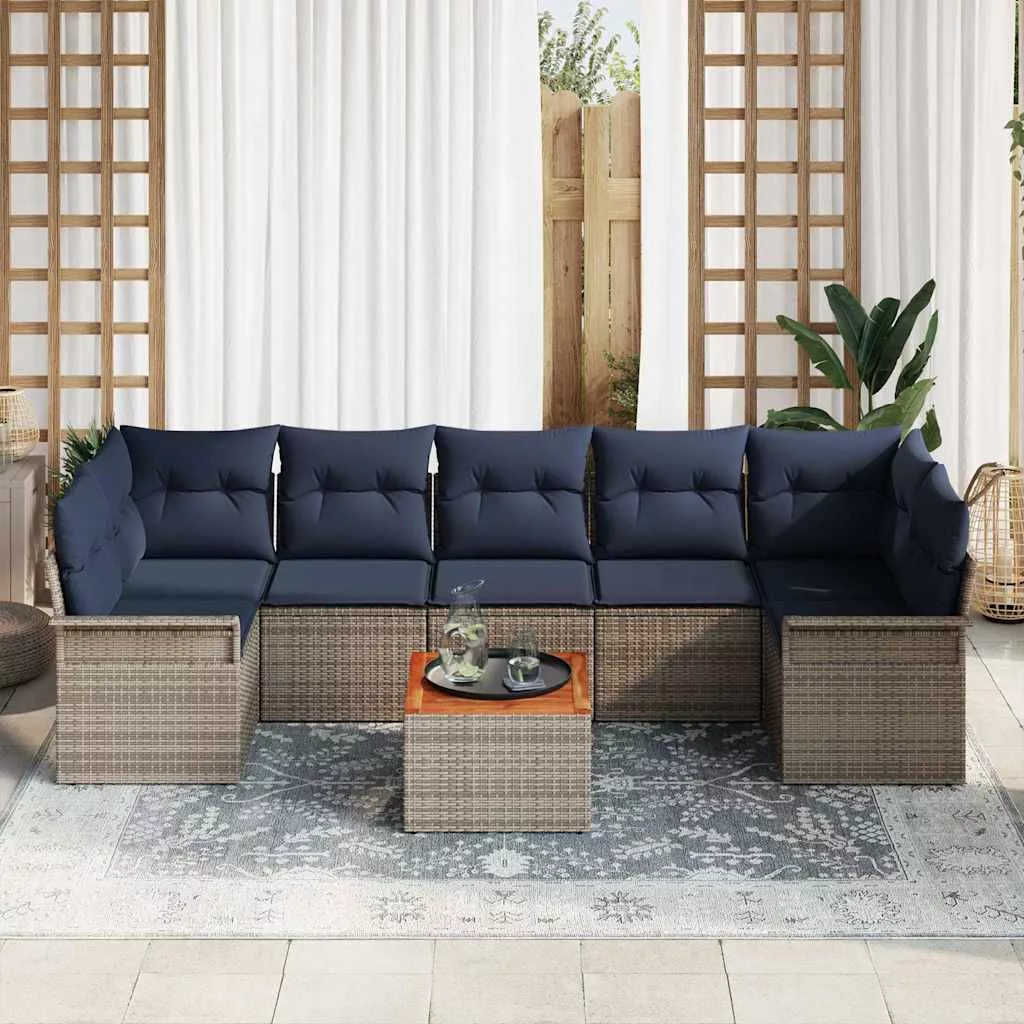 Kerti Kanapé Szett 8 pcs Szürke és sötétkék polirattan