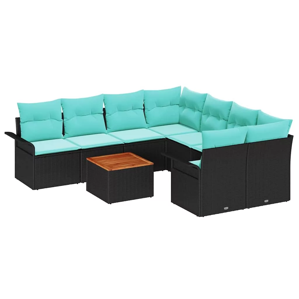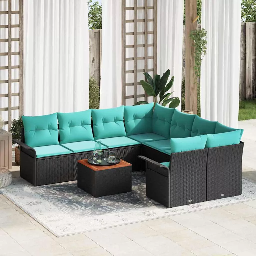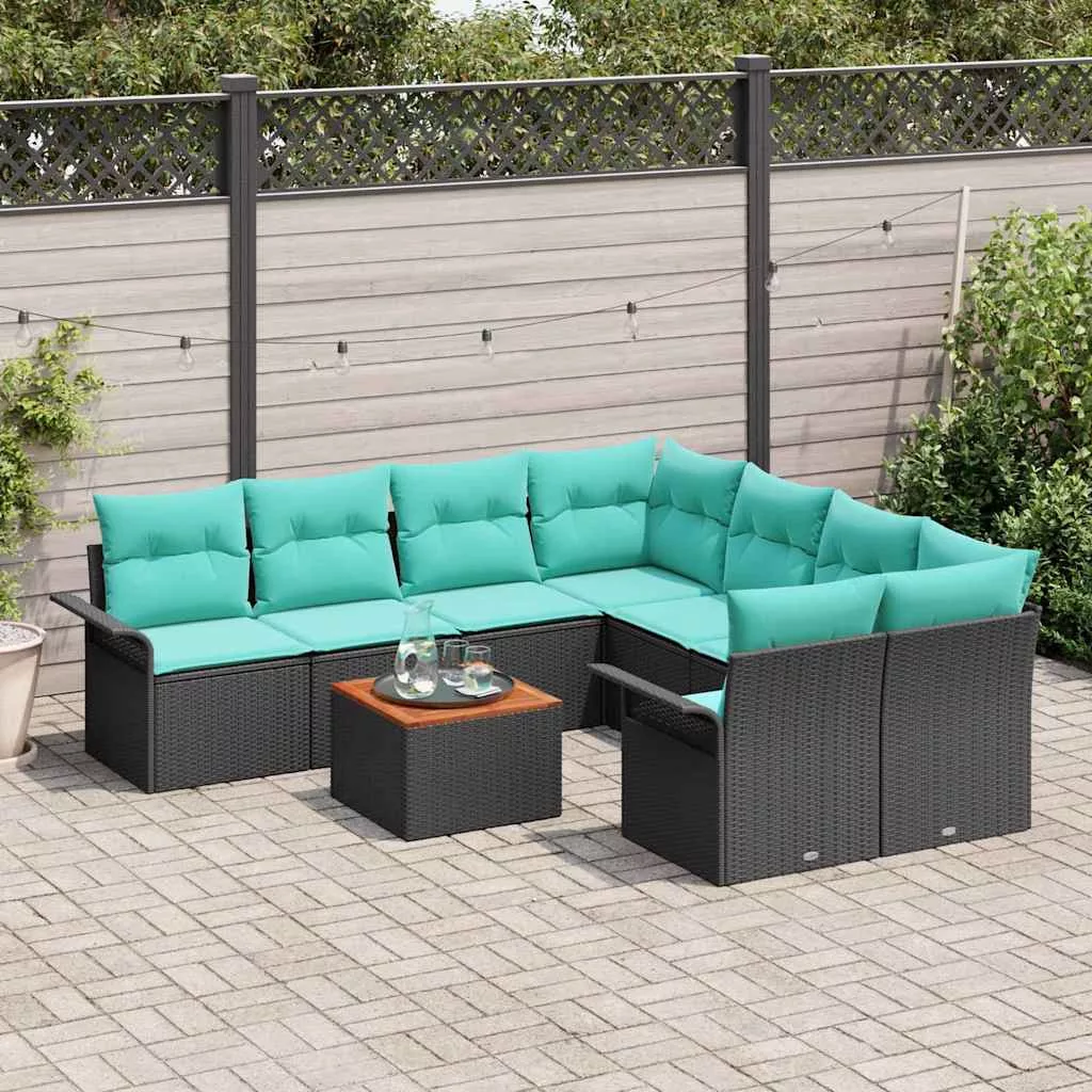 Kerti Kanapé Szett tárolóval 9 pcs Fekete és Türkiz polirattan