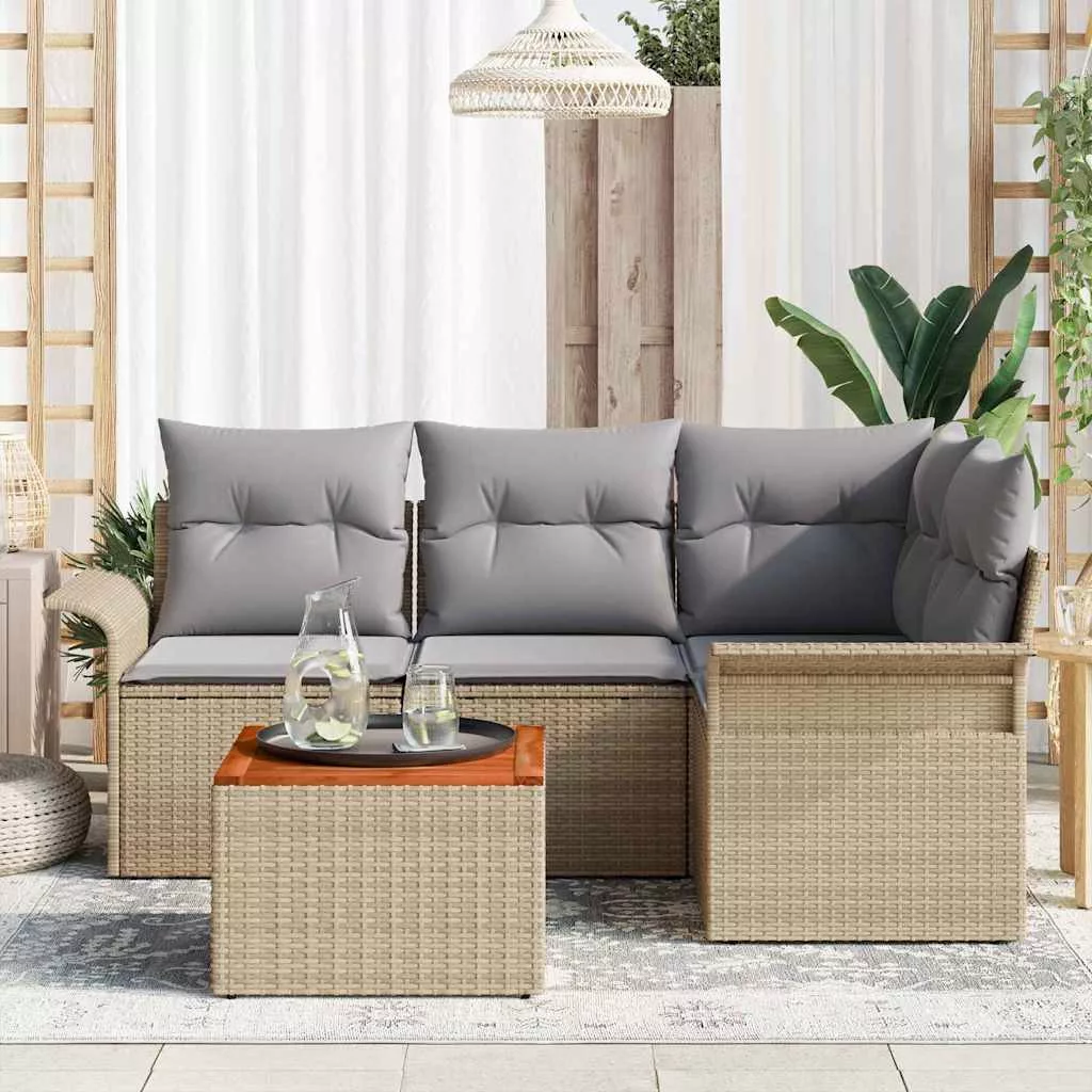 Kerti Kanapé Szett párnával 5 pcs Beige és Világosszürke