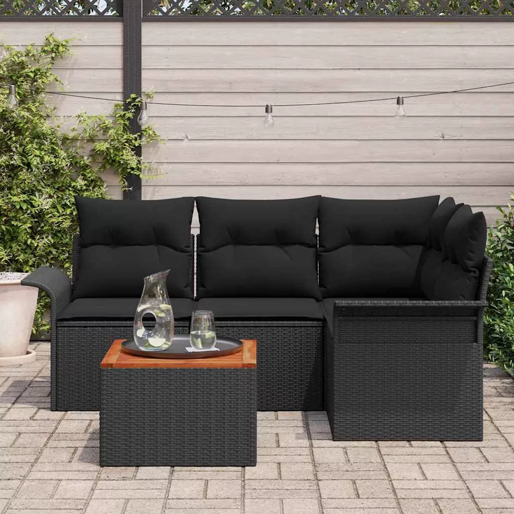 Kerti Kanapé Szett tárolóval 5 pcs Fekete polirattan